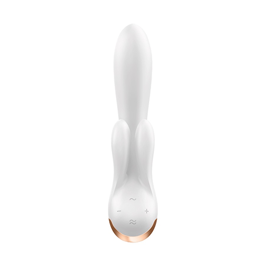 O Satisfyer Double Flex é um vibrador rabbit que mima o seu ponto-G ao mesmo tempo, e abraça o seu clitóris com dois pequenos braços flexíveis graças aos seus 3 motores. A vibração adicional de cada um dos braços vai estragar-la com mimos, enquanto o corpo ergonomicamente curvado acaricia o seu ponto quente. O melhor? Controlo com a aplicação gratuita Satisfyer Connect, que lhe dá ainda mais flexibilidade enquanto brinca!Particularmente atrativo: Em vez de tocar diretamente na sua pérola, o Satisfyer Double Flex massaja-la de ambos os lados, o que lhe oferece uma nova experiência emocional e também estimula a lábia. Pode controlar os motores do corpo e do estimulador clitoriano separadamente – através do painel de controlo do brinquedo ou através da aplicação Bluetooth. Combinações atrativas ou criação gratuita quase infinita: a escolha é sua!15 anos de garantia;Modo silencioso;Impermeável IPX7;Silicone antialérgico;Limpeza fácil;Bateria de lítio;Cabo de carregador USB incluído.Material: Silicone.Dimensões: 20,1 cm comprimento | 4,6 cm diâmetro.