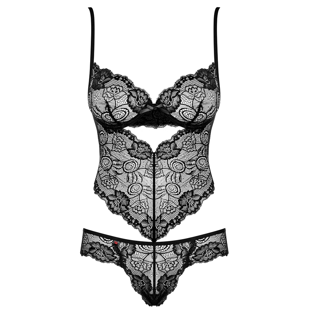 DESCRIÇÃO:Este adorável body em renda é decorado por detalhes florais e possui um desenho sedutor. As copas com armação vão dar especial destaque ao seu peito, a parte de trás tem uma romântica fita de cetim. O seu corte fantástico evidenciará as suas curvas. Este produto é da marca OBSESSIVE, uma marca líder, repleta de erotismo e sensualidade com modelos únicos que enaltecem ainda mais o corpo das mulheres.