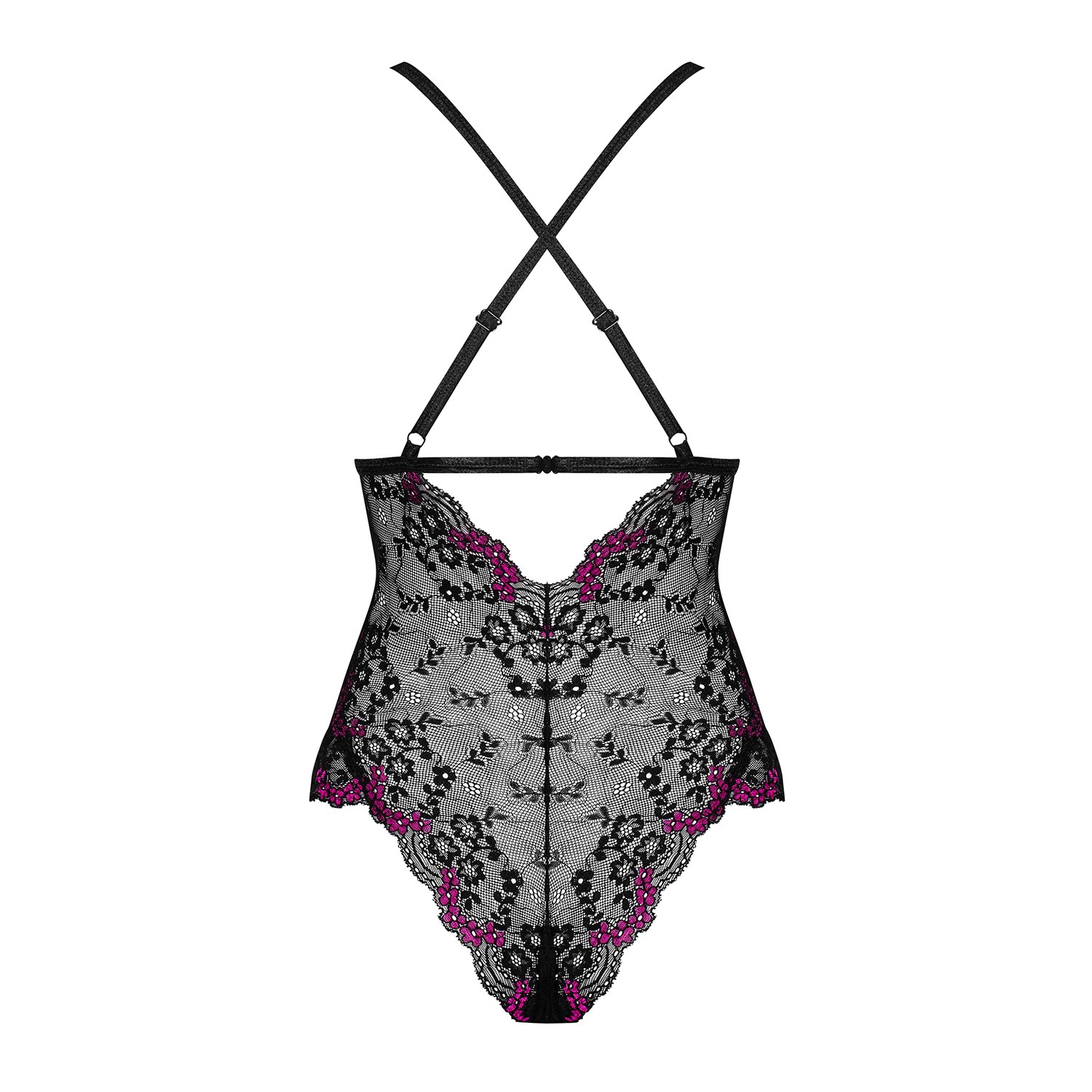 O body Vanessme é a combinação perfeita de tudo o que adoramos: subtileza, sensualidade e conforto. Parece-lhe o body ideal? Porque é exatamente o que ele é. O seu homem vai enlouquecer quando a vir com ele vestido, e não vai mais querer despi-lo, porque vi sentir-se extremamente bem com ele.Conheça os detalhes:- body preto com elementos bordeaux- renda sensual nas costas- fecho na virilha- corte confortável que adelga o corpo- ajuste perfeito graças às alças ajustáveis- material flexível e abraça o corpo (90% poliamida, 10% elastano)