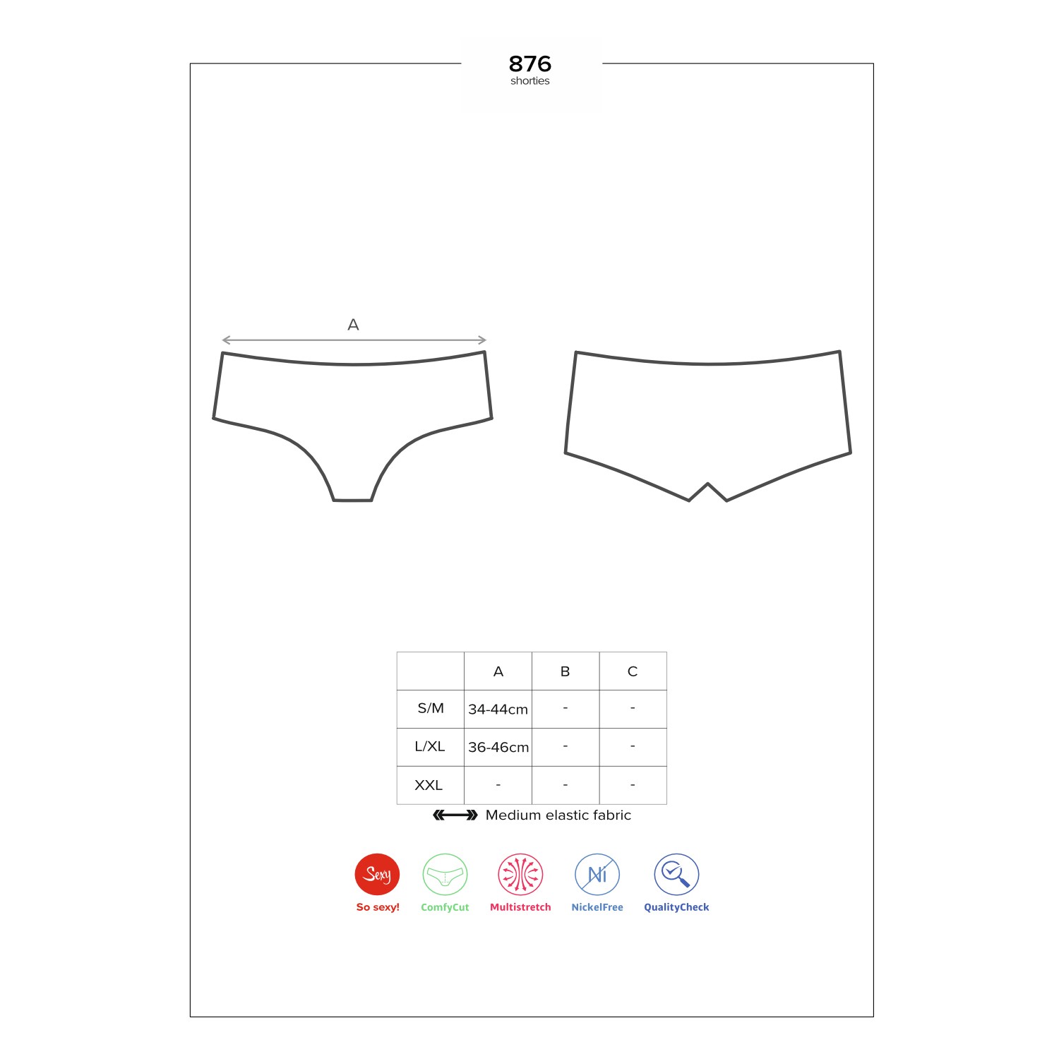 Nós projetamos estes boxers porque sabemos que você ama lingerie incrível. Agora… abra a caixa e descubra todos os detalhes tentadores! O seu traseiro e ancas vão ficar sexy!Quer saber mais? Prepare-se para:- boxers tentadores com design incomum;- padrão sutil e elegante – aparência feminina e fofa garantida;- tecido multistretch – conforto total e ótima aparência – o dia todo (e a noite toda);- pingente brilhante – um detalhe atraente;- adorno de metal sem níquel – 100% NickelFree;- design ComfyCut – sem costuras onde não devem estar!;- tecido agradável ao toque (90% poliéster, 10% elastano).