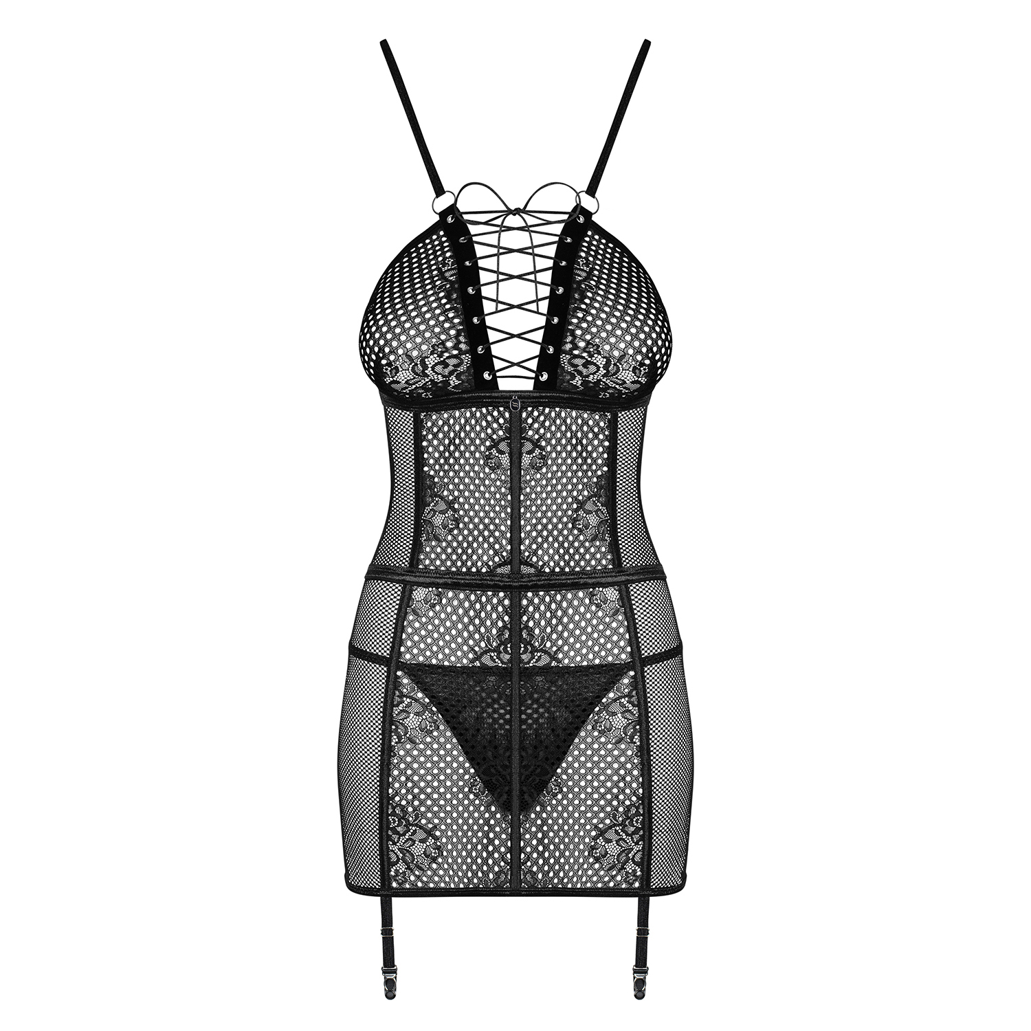 A malha é uma garantia de experiências espetaculares! Olhe para esta junção escaldante de preto e decorações de renda. Sensualidade, chique e um pouco de picante. Oh, sabíamos que ia gostar! Seios muiiiito sensuais e costas lindamente realçadas – com a camisa de noite Basitta vai ficar fenomenal!Mais detalhes? Aqui:- camisa de noite e tanga preta maravilhosa- alças ajustáveis – ajuste perfeito- fecho de várias etapas confortável nas costas- decote sensualmente decorado com anéis prateados- ligas ajustáveis e amovíveis- malha delicada e renda floral- laçado no peito – realça o look sensual- material elástico (90% poliamida, 10% elastano)