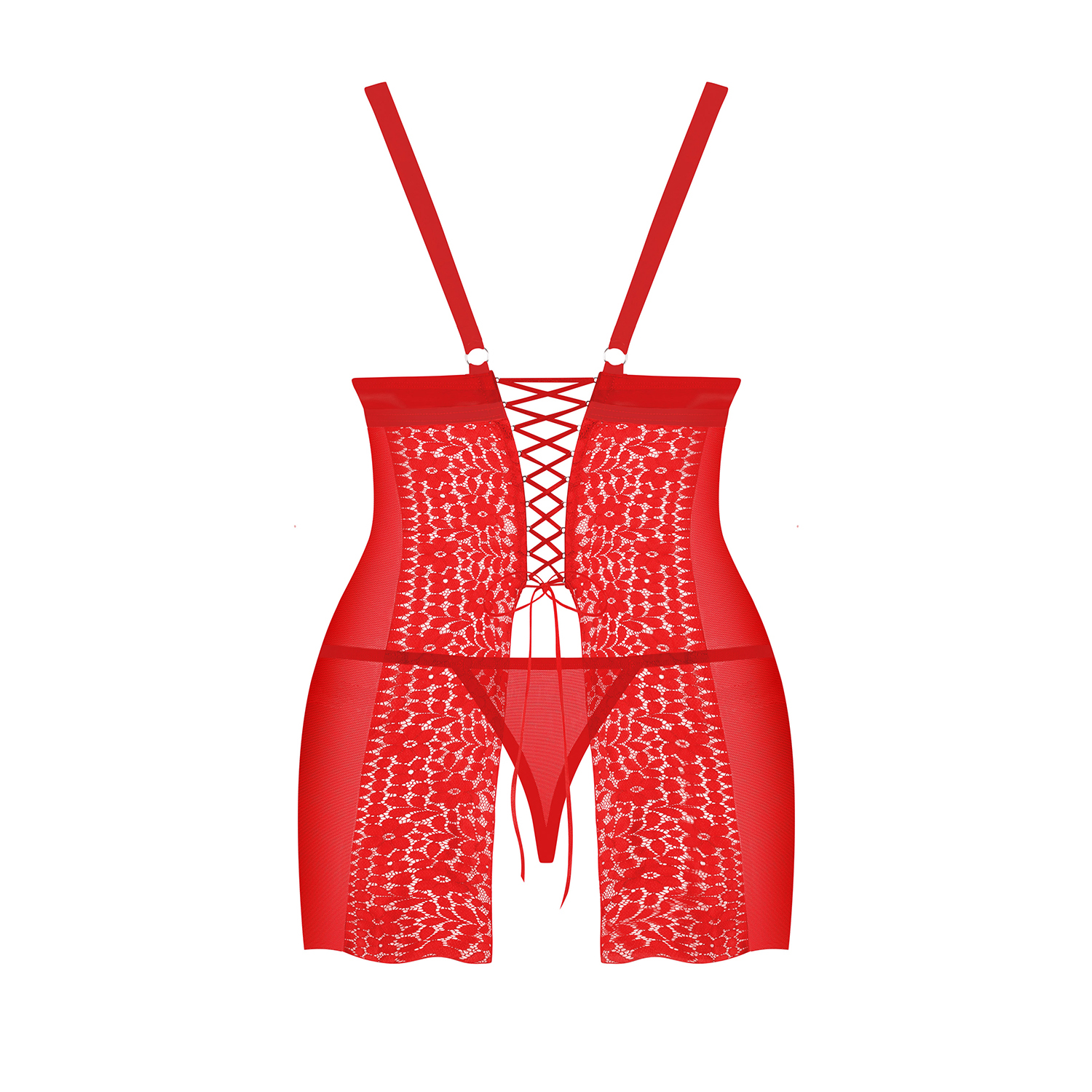 Podemos não saber tudo sobre si, mas prometemos-lhe que sabemos como fazer o seu coração bater mais depressa! Temos uma camisa de noite para si que a vai fazer apaixonar-se de novo pelo vermelho… e que, claro, se traduz em arrebatamento vermelho ardente para dois! A camisa de noite escaldante Blossmina com um laçado vai fazê-la sentir-se intimidada ao ver-se ao espelho. A renda e o vermelho ficarão ótimos em si!Veja de perto:- camisa de noite e tanga em vermelho atrevido- laçado chama perfeitamente a atenção para as costas- alças ajustáveis- laço elástico no busto que junta os seios- renda translucida decora a frente e a traseira- tanga magnífica com um corte clássico- material que se adapta ao corpo (90% poliamida, 10% elastano)