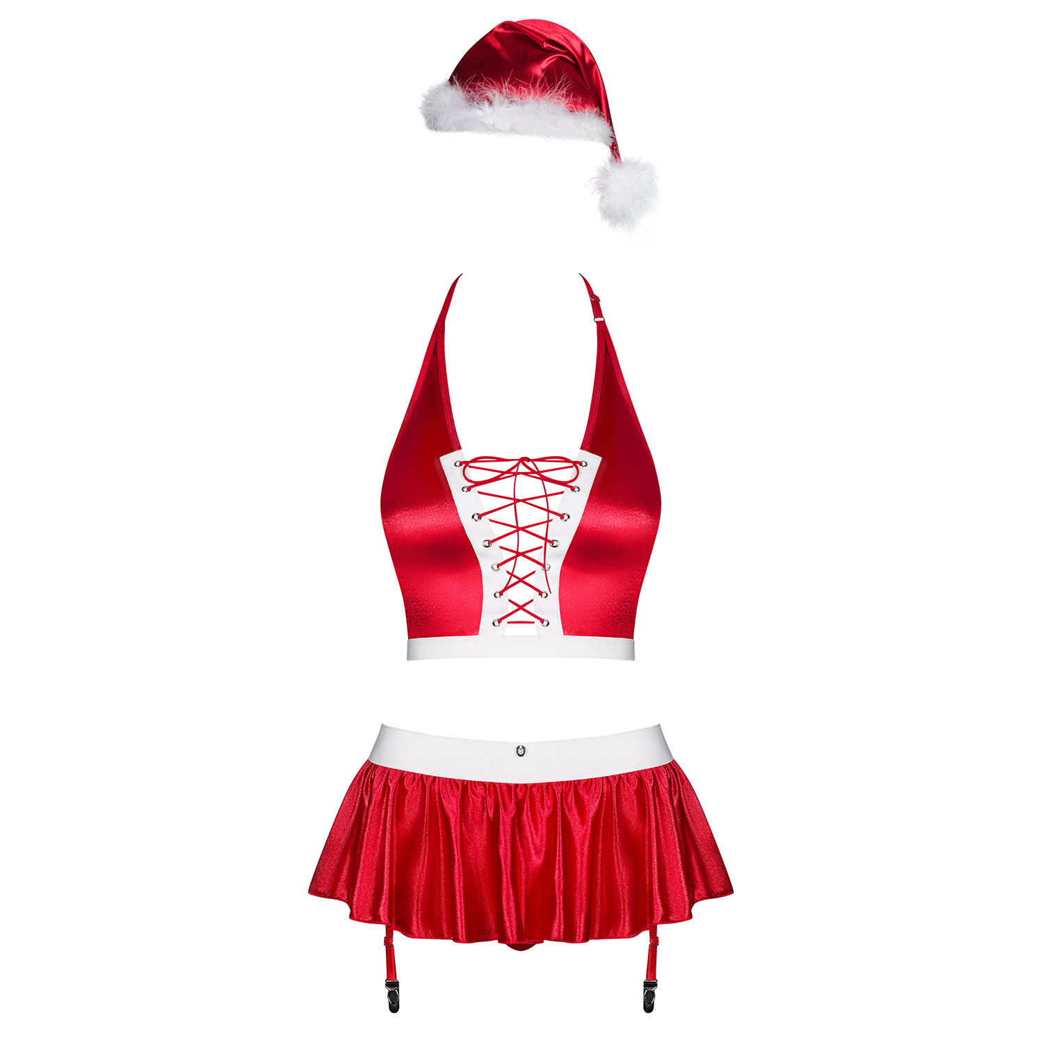 Derrete-se frente a lingerie vermelha encantadora? Bem, agora é melhor ter cuidado… Cores clássicas das festividades, chapéu fofo com pompom e várias soluções convenientes – este conjunto único vai roubar-lhe o coração! Ms Claus é uma combinação atrevida de sex appeal e vermelho intenso, onde a decoração principal é um elegante corpete ao estilo de espartilho e costas tentadoras expostas.É hora de saber mais detalhes:- o conjunto inclui um gorro, top, saia com tanga e cinto de ligas, meias para ligas- fantasia de Mãe Natal em vermelho intenso- alças de ombro ajustáveis e fecho de várias etapas – ajuste perfeito- gorro com pompom branco – estimula a imaginação- o laço de cordão enfatiza maravilhosamente o busto- cinto de ligas elegante e saia – 2em1- ligas do cinto ajustáveis- meias de ligas a combinar- materiais agradáveis e flexíveis (90% poliamida, 10% elastano)